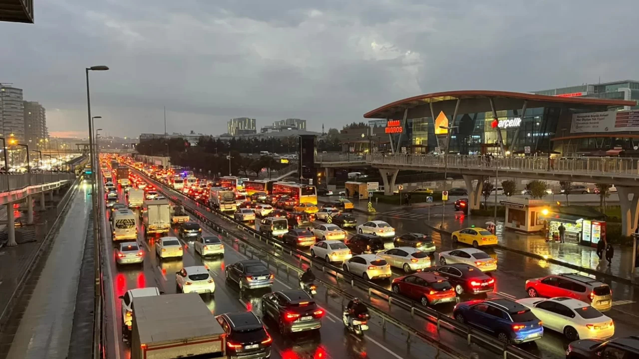 Meteoroloji yetkililerinin uyarılarının ardından megakent İstanbul’da önce şiddetli rüzgar ardından da beklenen yağmur başladı. Yağmurun başlamasıyla birlikte trafik yoğunluğu da arttı. Ana arterlerde uzun araç kuyrukları oluştuğu gözlendi. Trafik zaman zaman durma noktasına geldi. Yenibosna trafik yoğunluğu kameraya yansıdı.