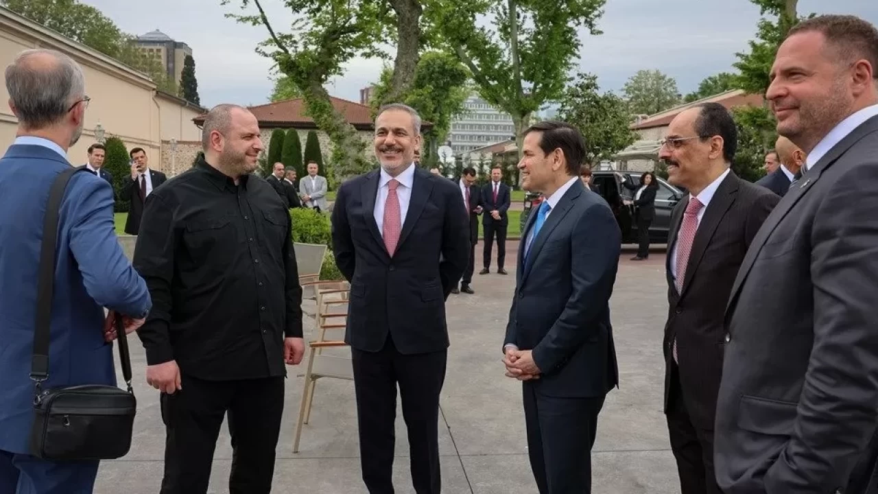 Dışişleri Bakanlığı kaynaklarından edinilen bilgiye göre; Türk, Amerikalı ve Ukraynalı heyetler, Dışişleri Bakanı Hakan Fidan'ın başkanlığında İstanbul'daki Cumhurbaşkanlığı Dolmabahçe Çalışma Ofisi'nde bir araya geldi.