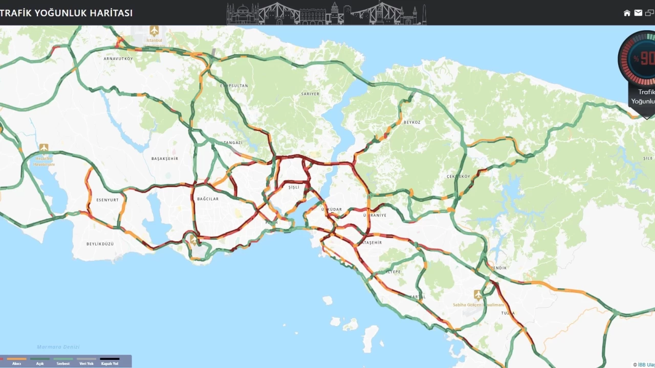 İstanbul'da dün öğle saatlerinde başlayan kar yağışı ile birlikte yollarda yoğunluk oluştu. Trafik yoğunluğu akşam iş çıkış saatinde yüzde 90'a ulaştı. Ana arterlerde trafik durma noktasına gelirken, vatandaşlar evlerine gitmekte güçlük yaşadı. Dersini alan İstanbul halkı, bugün işe giderken toplu taşıma araçlarını kullanmayı tercih etti. Trafiğin en yoğun olduğu, iş çıkış saati olan 18:30'da trafik yoğunluğu yüzde 22 olarak ölçüldü.