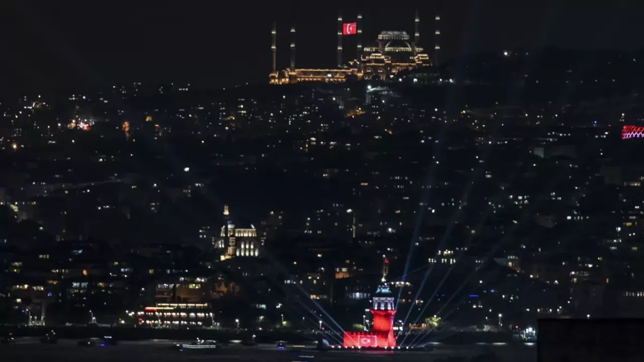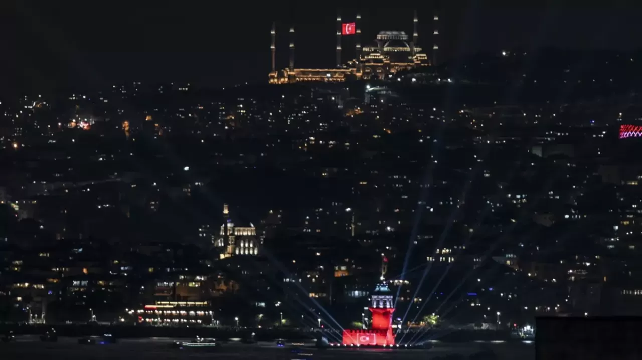 Cumhuriyet'in 100. yıl dönümü dolayısıyla Büyük Çamlıca Camisi ve Kız Kulesi Ay Yıldızlı bayraklar ve ışıklarla aydınlatıldı.