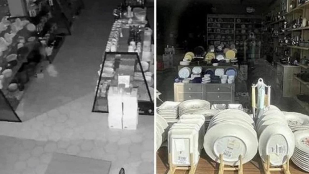 İş yerinin güvenlik kamerasının deprem anında kaydettiği görüntülerde ise rafların sallanması, bazı ürünlerin yere düşmesi, tozların uçuşması, yakınlarda yıkılan bir binadan kalkan toz ve parlayan ışıklar dikkati çekti.