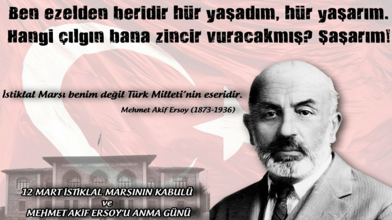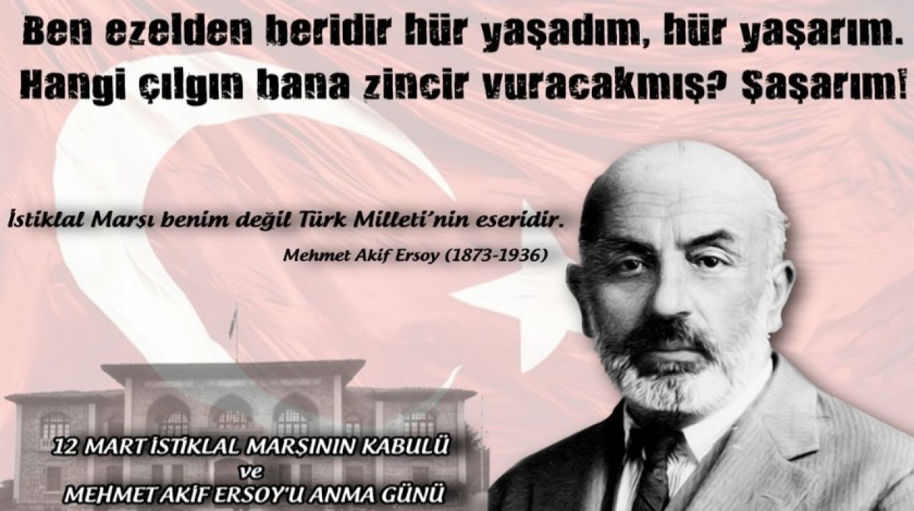 Milletimizin bağımsızlığa ve kutsal değerlerine olan inancını destanlaştıran İstiklal Marşımızın, Türkiye Büyük Millet Meclisinde Milli Marş olarak kabul edilişinin 99. yıl dönümünü kutluyor; başta Mustafa Kemal Atatürk olmak üzere, tüm kahraman şehitlerimizi ve Milli Şair Mehmet Akif Ersoy’u rahmet ve minnetle anıyoruz.”
