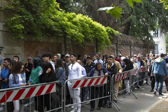 Uzun kuyruk oluşturan vatandaşlar, Türkiye'nin Milano Başkonsolosluğu önünde sıralarının gelmesini bekledi.