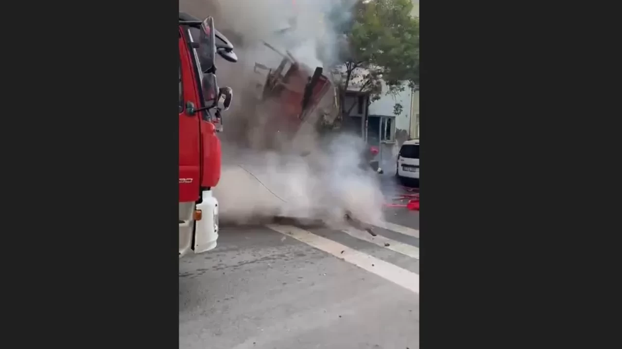 Görüntülerde, düşen parçaların altında kalan itfaiye erlerinin çırpınması ve çevredeki vatandaşların panik içinde yardım etmeye çalıştığı anlar yer aldı.