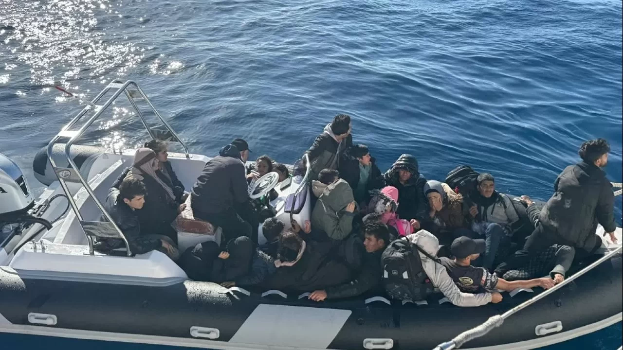Ekipler, lastik bottaki 28 düzensiz göçmeni yakaladı.