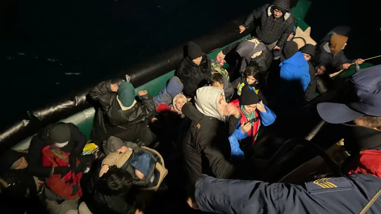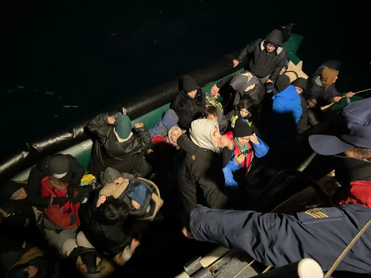 Ekipler, durdurdukları lastik bottaki 22'si çocuk 50 düzensiz göçmeni yakaladı.