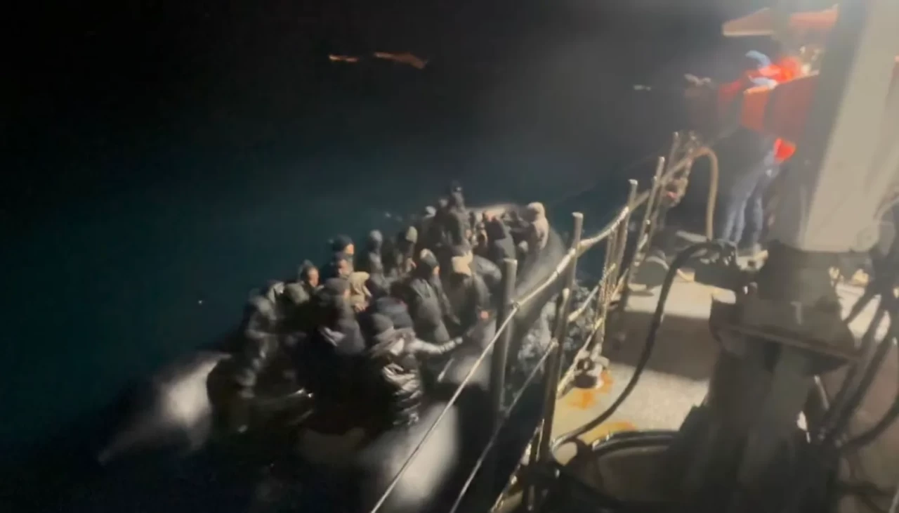 İzmir açıklarında düzensiz göçle mücadele kapsamında yürütülen çalışmalar sonucu 7’si çocuk olmak üzere 74 düzensiz göçmen yakalandı.