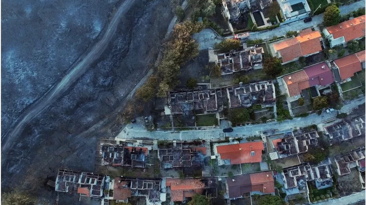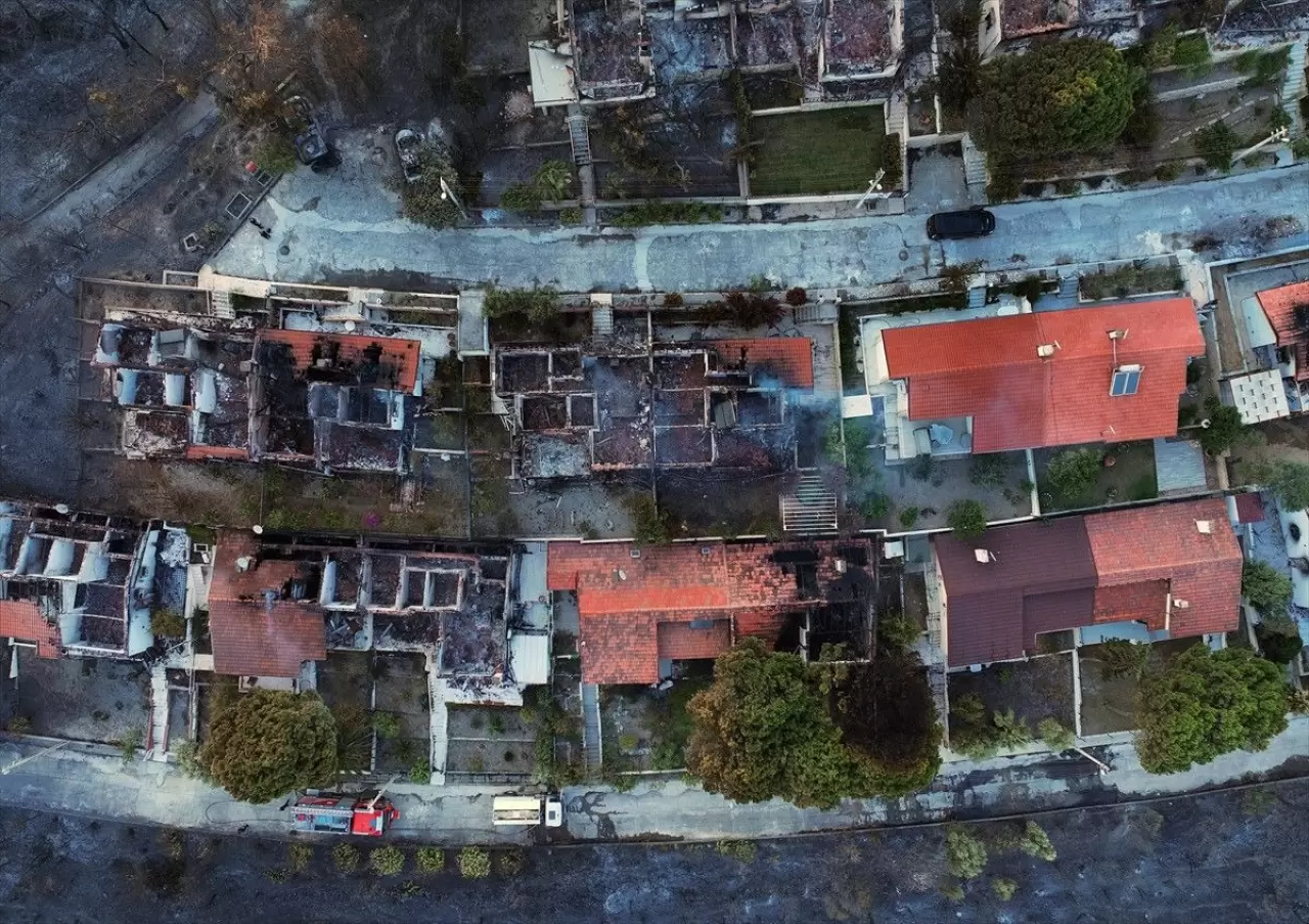 Öte yandan yangından zarar gören Doğankent Sitesi havadan görüntülendi.