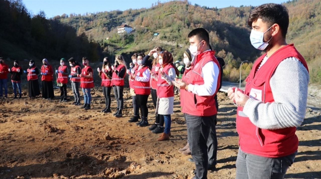 Türk Kızılay Zonguldak Şubesince gerçekleştirilen etkinlikte, Sapça Tüneli çıkışında bulunan alana İzmir depreminde yaşamını yitiren vatandaşlar için dua edilmesinin ardından fidan dikimi yapıldı.