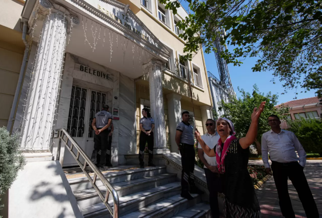 Mağdur edildiklerini ifade eden mahalle sakinleri, Bornova Belediyesi binası önünde yaşadıkları duruma tepki gösterdi.