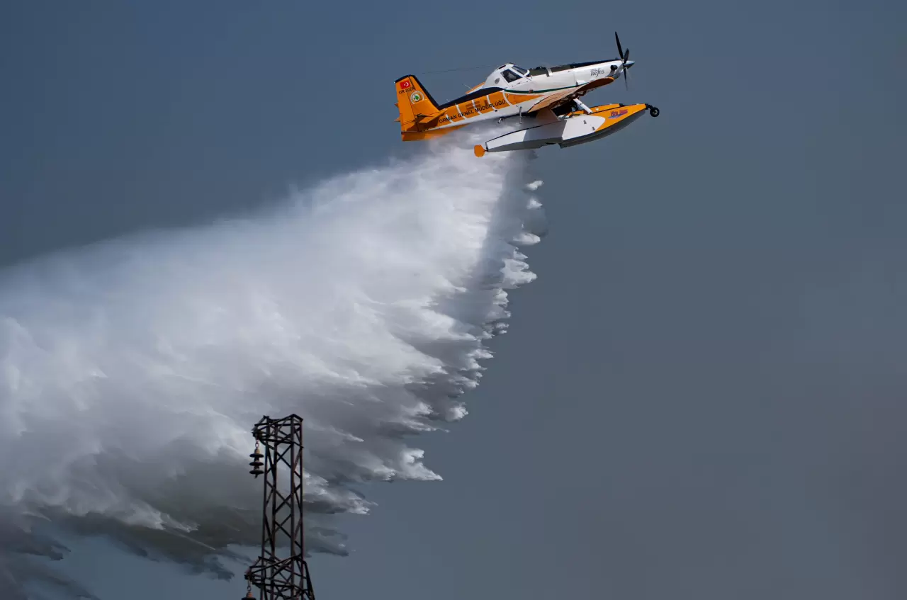 Paylaşımda yangına havadan müdahale görüntüleri de yer aldı.
