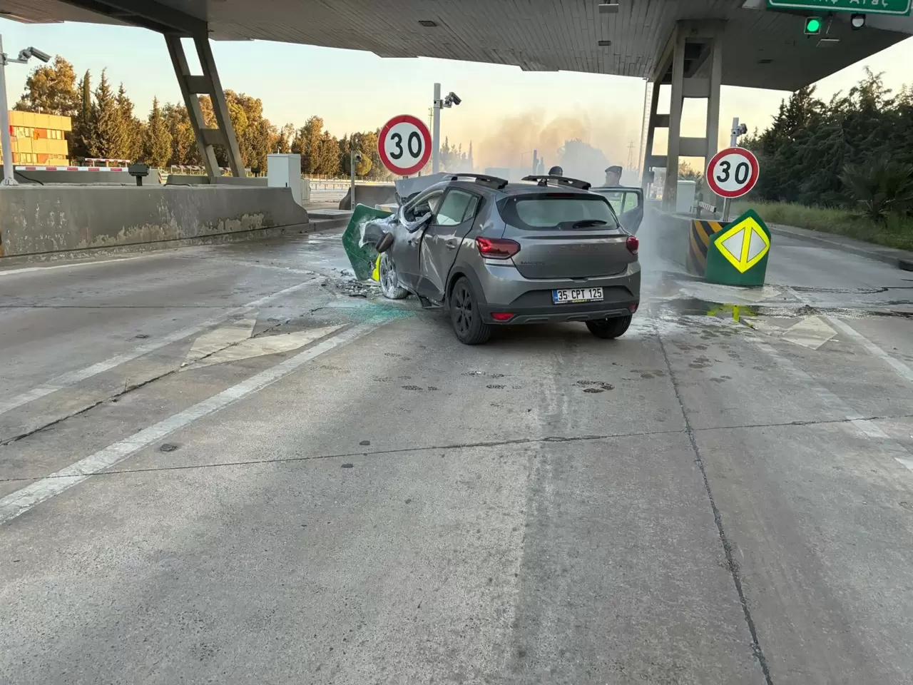 Kaza, geçen cumartesi saat 19.00 sıralarında İzmir-Aydın Otoyolu Havalimanı gişelerinde meydana geldi. Beyza Nur Pürmüs'ün kontrolünü yitirdiği 35 CPT 125 plakalı otomobil, iki gişe arasındaki beton bariyerlere çarptı. Otomobilde çıkan yangın, kısa sürede büyüdü. İhbar üzerine kaza yerine itfaiye, sağlık ve jandarma ekibi sevk edildi.