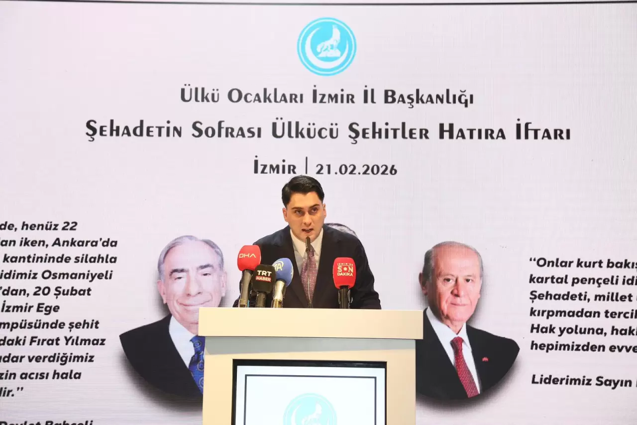 İzmir Ülkü Ocakları İl Başkanlığı tarafından düzenlenen “Şehadetin Sofrası: Ülkücü Şehitler Hatıra İftarı” programı, şehit aileleri ve protokol üyelerinin katılımıyla gerçekleştirildi. Duygu dolu anlara sahne olan programda birlik, vefa ve emanet vurgusu öne çıktı.