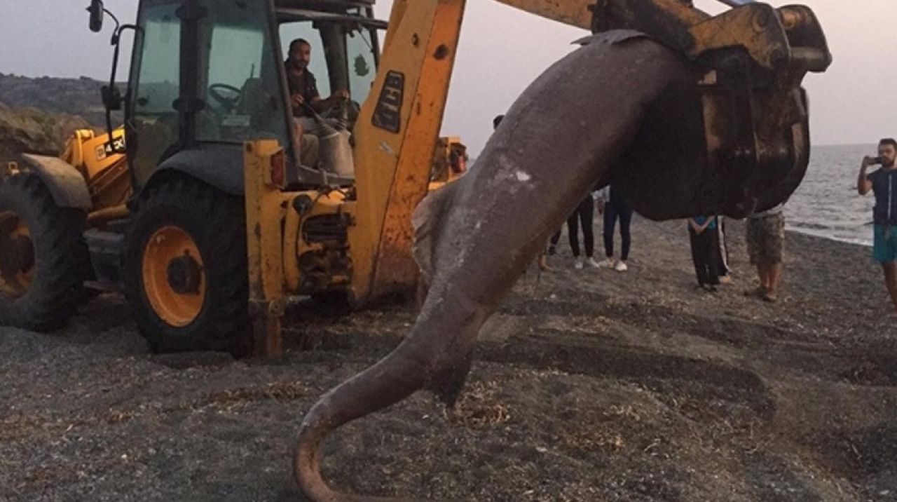 Önceki gün sabah saatlerinde, Ürkmez Mahallesi'ndeki halk plajına yaklaşık 900 kilo ağırlığında olduğu söylenen 'Boz Camgöz' türü olduğu tahmin edilen 3 metre uzunluğunda köpek balığı vurdu. Sahilde yürüyüş yapan vatandaşlar, köpek balığını görünce büyük şaşkınlık yaşadı. Durumun bildirilmesi üzerine Seferihisar Belediyesi'ne ait ekipler, söz konusu sahile gelerek köpek balığını kaldırdı. Köpek balığının ölüm nedeni araştırılırken, ekipler iş makinesi ile köpek balığını sahilden alarak belediyeye ait hayvan mezarlığına götürdü.