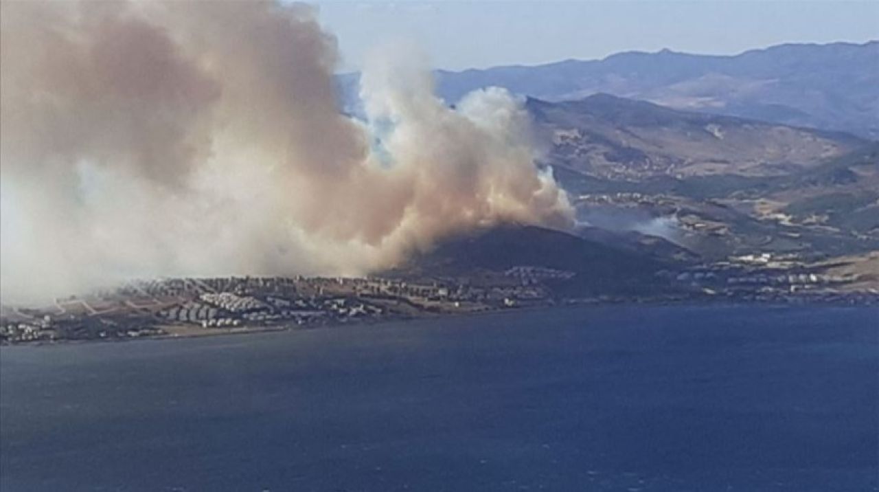 İzmir'in Dikili ilçesine 15 kilometre mesafedeki 456 nüfuslu kırsal Yaylayurt Mahallesi'ndeki bir tarım arazisinde, bugün saat 17.00 sıralarında yangın çıktı.