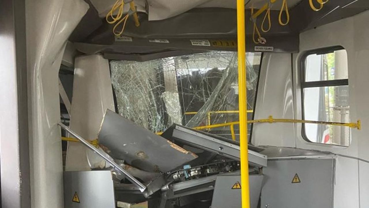 İzmir’de metro raydan çıkarak duvara çarptı.