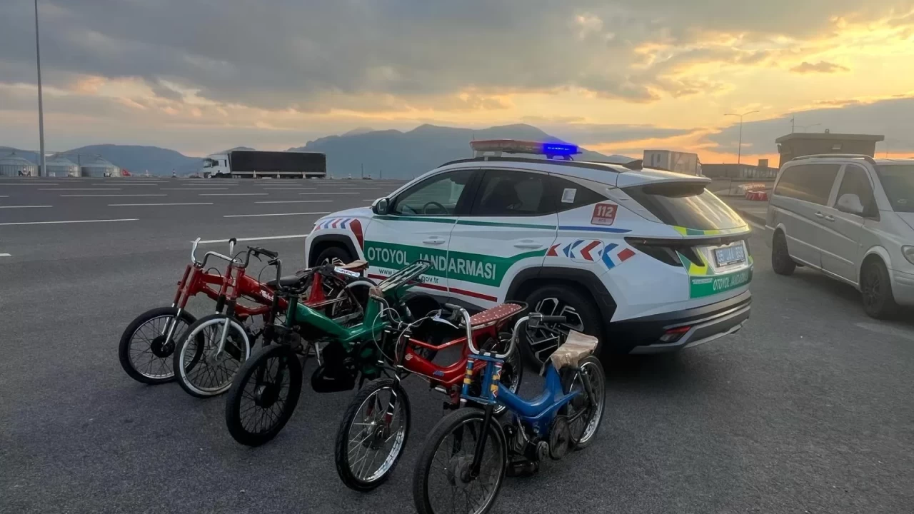 Otoyoldaki güvenlik kamera görüntülerini inceleyen ekipler, plakası ve tescil kaydı bulunmayan 5 motosikleti ve sürücülerini tespit etti.