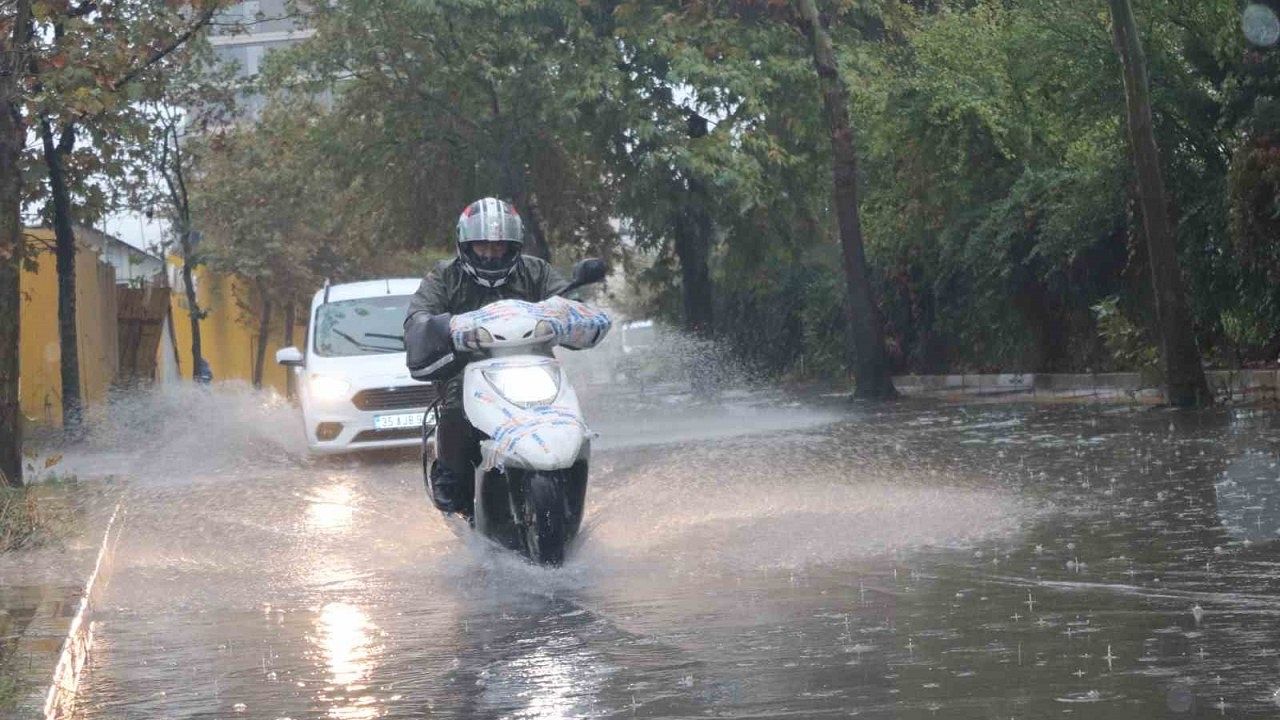 Meteoroloji Genel Müdürlüğünün uyarısının ardından sağanak yağış İzmir’de de etkili oldu. Yağmur, vatandaşlara ve sürücülere zor anlar yaşatırken, günlük hayatı da olumsuz etkiledi. Yağış sebebiyle cadde ve sokaklar adeta göle döndü. Yoğun su birikintisinin olduğu Konak ilçesi Anadolu Caddesi’nde trafikteki sürücüler güçlükle ilerledi. Buca ilçesinde ise şiddetli yağış sebebiyle sokaklar ve caddeler göle döndü. Bir araç su birikintisi içinde kalarak arıza yaptı.