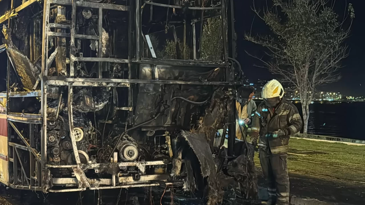 İtfaiyenin müdahalesiyle söndürülen yangın sonucu otobüste hasar oluştu.