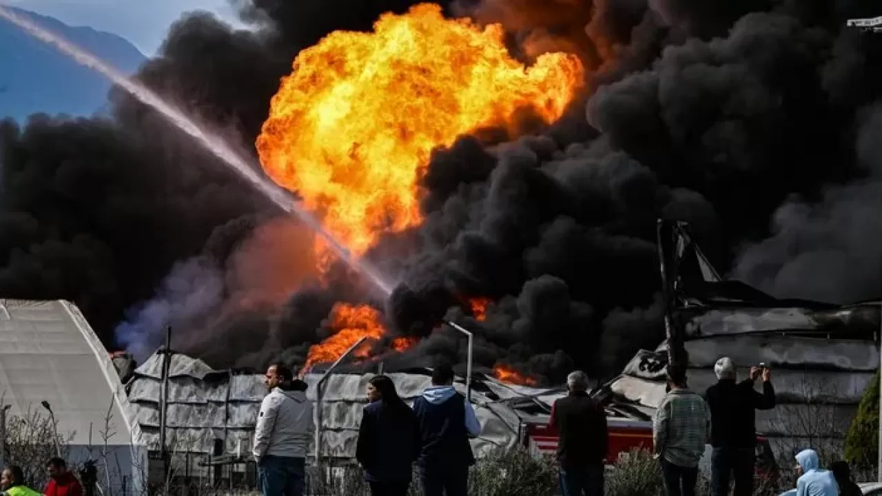İtfaiye ekipleri, zaman zaman yaşanan patlamalar nedeniyle alevlere müdahalede güçlük yaşarken, söndürme çalışmaları sürüyor.