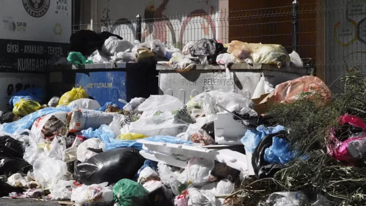 İzmir'in Buca ilçesinde sokaklar çöplerle doldu.