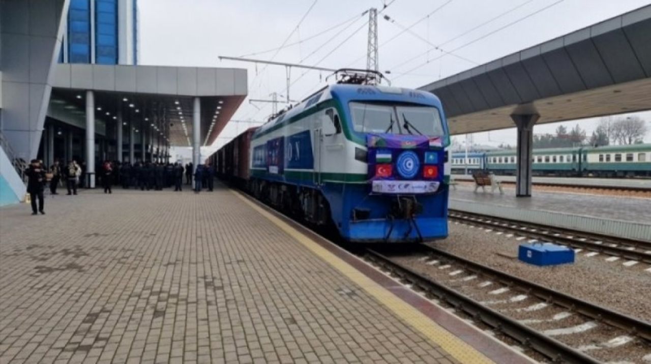 İzmir’den hareket edip Van Gölü üzerinden İran ve Türkmenistan'ı geçerek Özbekistan’a ulaşan ilk kargo treni, Taşkent Demiryolu İstasyonu'nda törenle karşılandı.