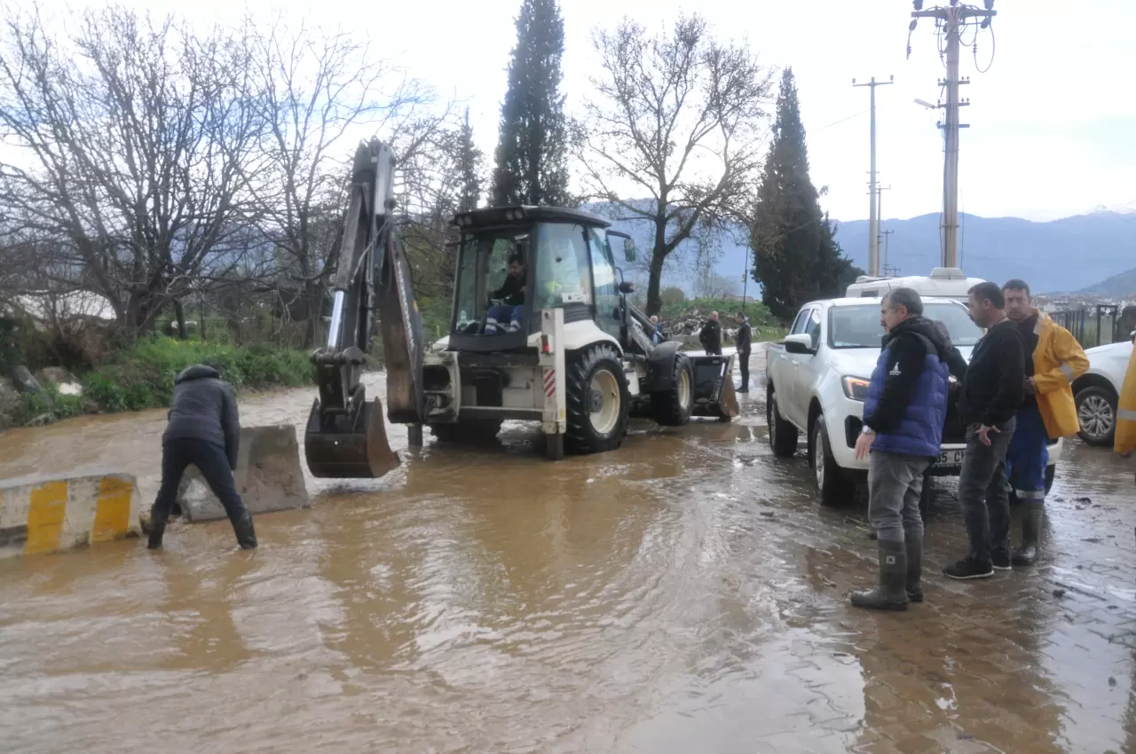 Belediye ekipleri, iş makineleriyle suların biriktiği yollarda tahliye çalışması yaptı.