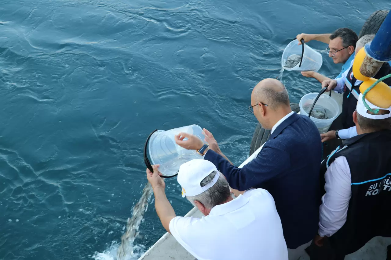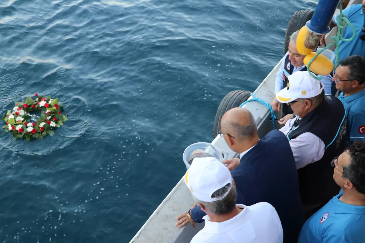 Törenin ardından İlçe Müftüsü Mustafa Atilla dua etti, protokol üyeleri açıldıkları tekneyle denize çelenk ve levrek yavrusu bıraktı.