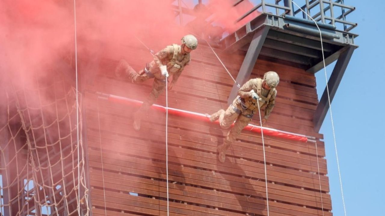 Daha sonra Komutanlığın öğretmen ile kursiyerleri, yakın dövüş teknikleri ve perde kule inişi gösterileri sundu.