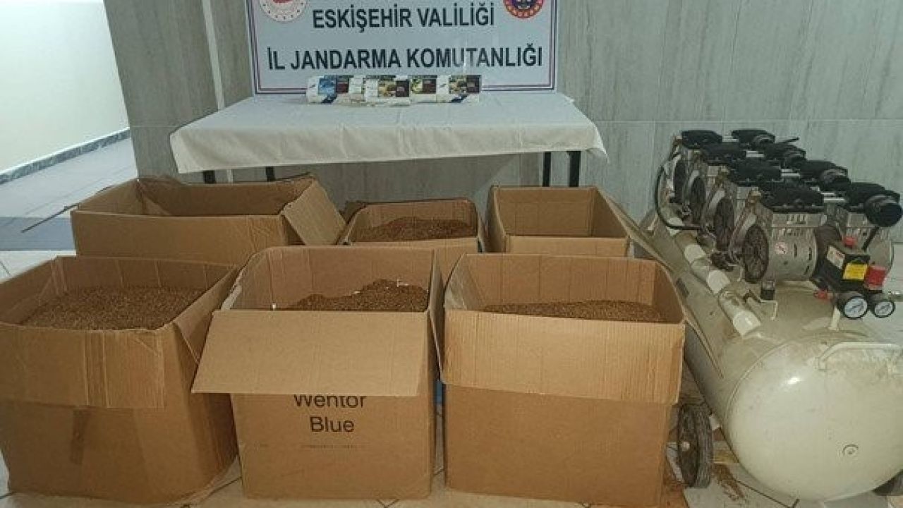Edinilen bilgilere göre, Eskişehir İl Jandarma Komutanlığı Kaçakçılık ve Organize Suçlarla Mücadele Şube Müdürlüğü (KOM) ekiplerince Odunpazarı ilçesinde bir şüpheli şahsın kaçak yollardan temin ettiği tütün ve tütün mamullerini piyasaya sürüp, satış yaparak haksız kazanç elde ettiği öğrenildi. KOM Şube Müdürlüğü ve Odunpazarı İlçe Jandarma Komutanlığı ekipleri tarafından şüpheli şahısın ikametinde ve oradaki eklentilerde arama yapıldı. Yapılan aramada piyasa değeri 35 bin lira olarak değerlendirilen, karton kutulara konulmuş 87 kilogram açık tütün, 2 bin 600 dal içi tütün doldurulmuş makaron ve 1 adet makaron doldurma işleminde kullanılan kompresör ele geçirilerek, el konuldu.
