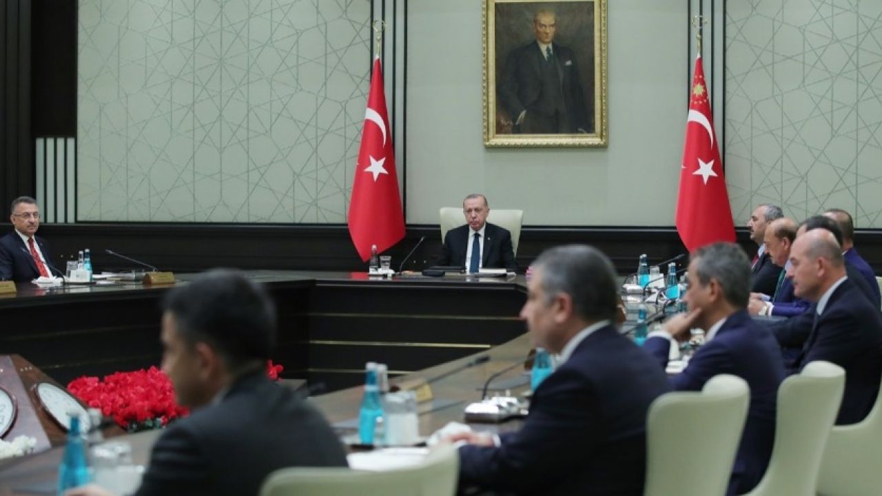 Cumhurbaşkanı Erdoğan, Katar dönüşü Beştepe'deki Cumhurbaşkanlığı Külliyesi'ndeki toplantıya başkanlık ediyor.