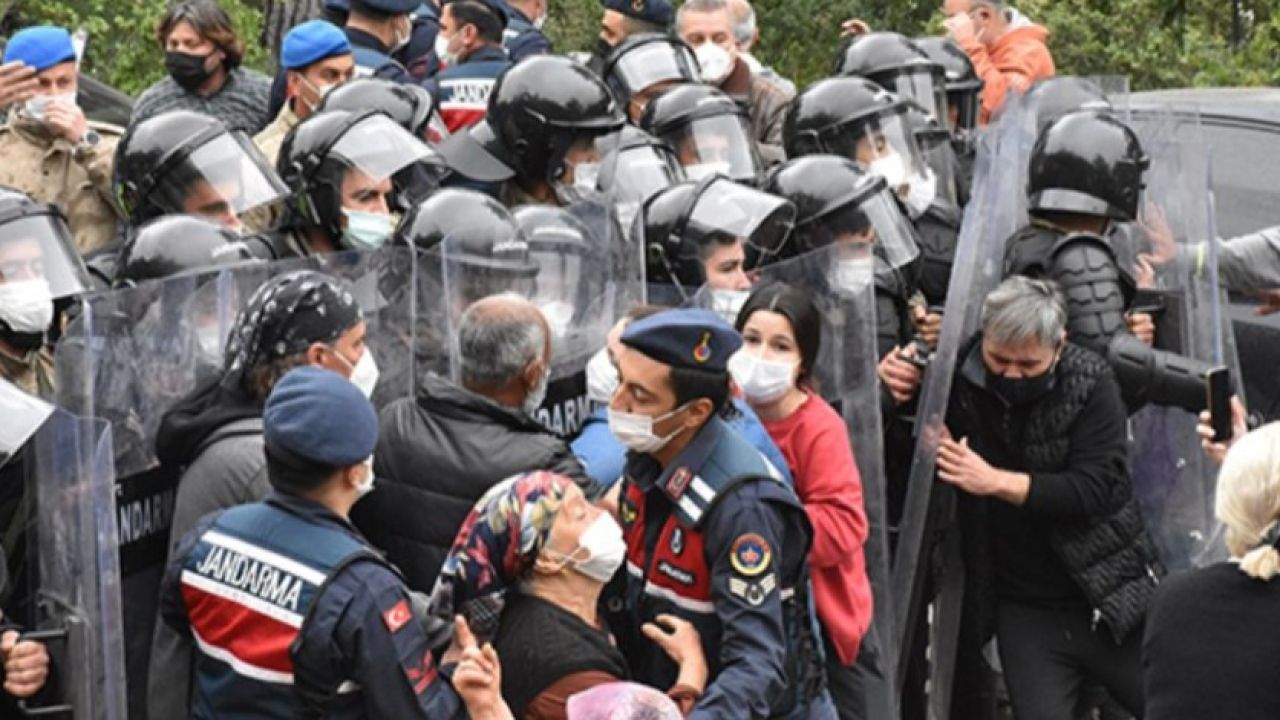Bunun üzerine bölgeye İl Jandarma Komutanlığı Komando Taburu'ndan 100 asker ile 50 jandarma sevk edildi. Ekipler, toplanan kişileri kalkanlarla geri iterek yolu açmaya çalıştı.