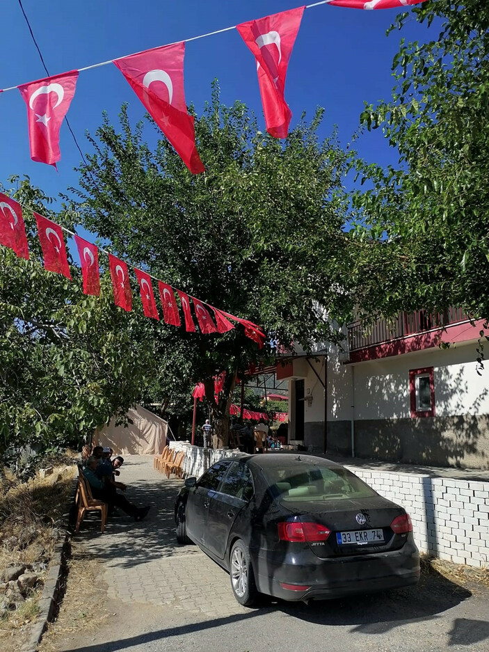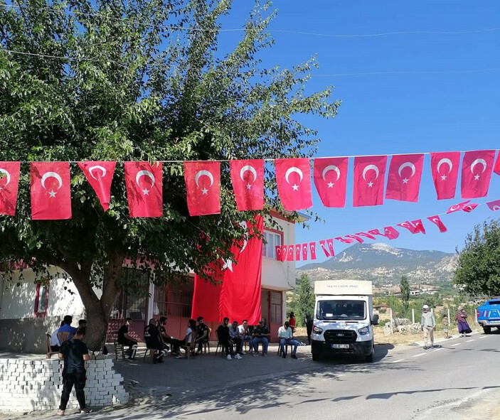 Şehidin Onikişubat ilçesi Döngele Mahallesindeki baba ocağı Türk bayraklarıyla donatıldı.
