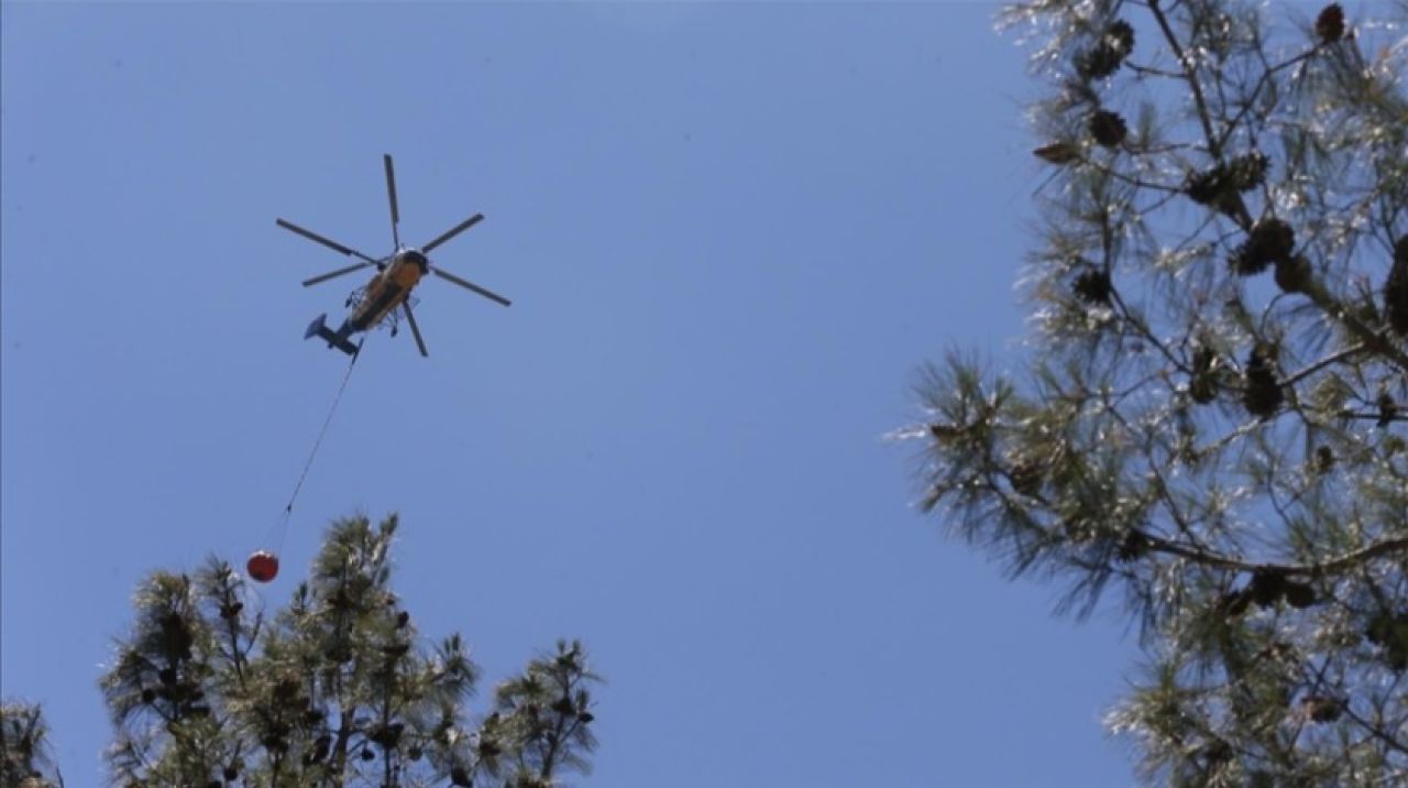 İhbar üzerine bölgeye sevk edilen 2 helikopter, 7 arazöz, 6 su tankı, 2 iş makinesi ve 120 personelle, yangına havadan ve karadan müdahale ediliyor.
