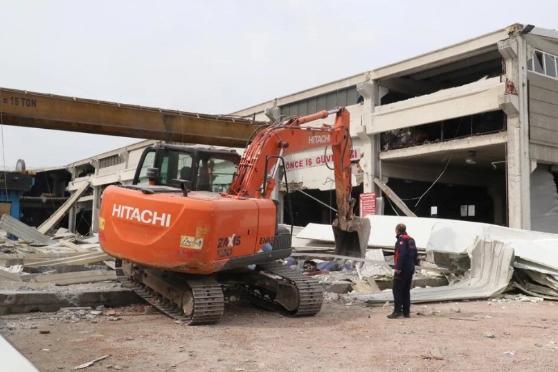 Kahramanmaraş'ın Dulkadiroğlu ilçesi Karaziyaret Mahallesi'nde depremlerde ağır hasar alan bir metal fabrikasında, iddiaya göre, iş yeri sahibi, bazı işçileri paket ürünleri içeriden çıkarmak için görevlendirdi.