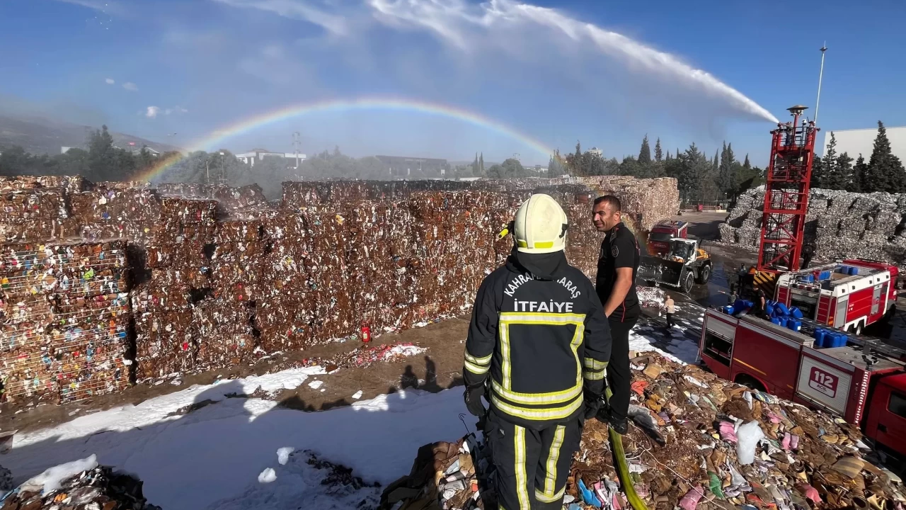 Eyüp Sultan Mahallesi'nde faaliyet gösteren fabrikanın bahçesindeki kağıt balyalarının tutuştuğunu gören çalışanlar, durumu itfaiye ekiplerine haber verdi.