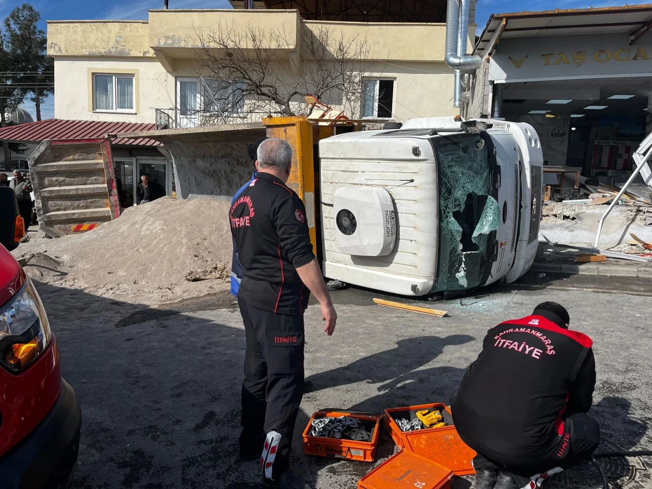 S.D. idaresindeki kum yüklü hafriyat kamyonu, Yeşiltepe Mahallesi Büğlek Caddesi'nde seyir halindeyken M.G'nin kullandığı özel halk otobüsüne çarptıktan sonra bir iş yerinin duvarına çarparak devrildi.