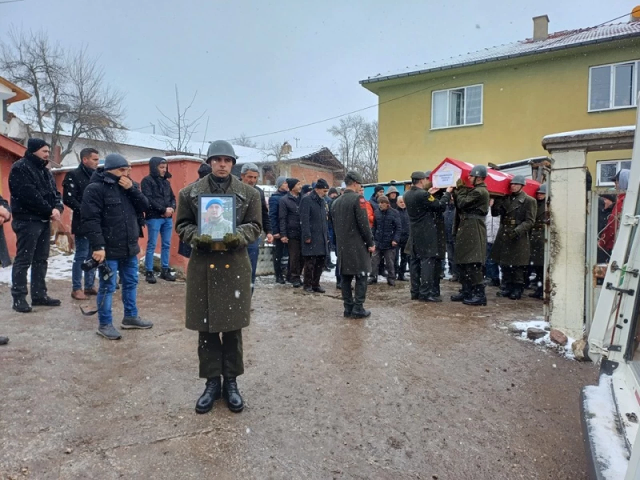 Bozan'ın Türk bayrağına sarılı tabutu, Yeniçağa ilçesine bağlı Hamzabey köyündeki evine getirildi.