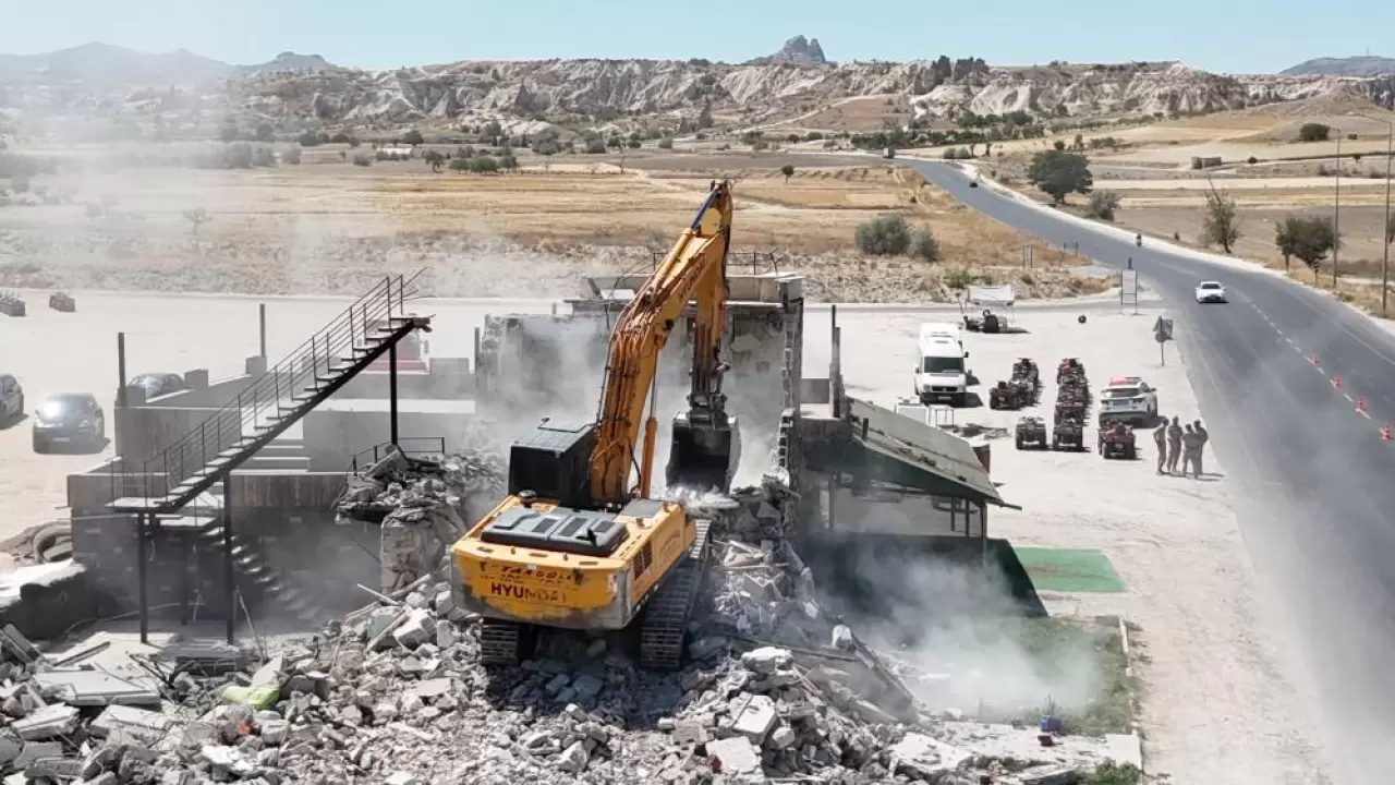 Nevşehir'in Avanos ilçesinde doğal sit alanı içerisine izinsiz inşa edildiği tespit edilen otel ve restoran yıkıldı.