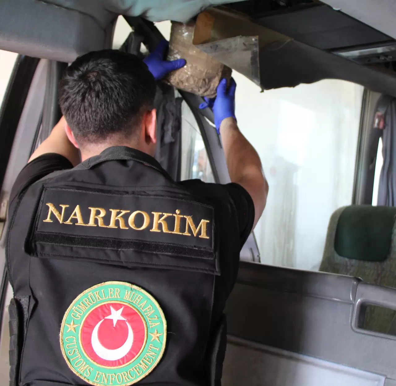 Şüpheli yoğunluğun bulunduğu bölümde yapılan aramada, narkotik dedektör köpeği Neptün de kullanıldı. Köpeğin tepki verdiği alan açıldığında, şeffaf poşetler içinde gizlenmiş 27 paket bulundu. Yapılan incelemede paketlerde toplam 77 kilo 36 gram sentetik hap olduğu belirlendi.