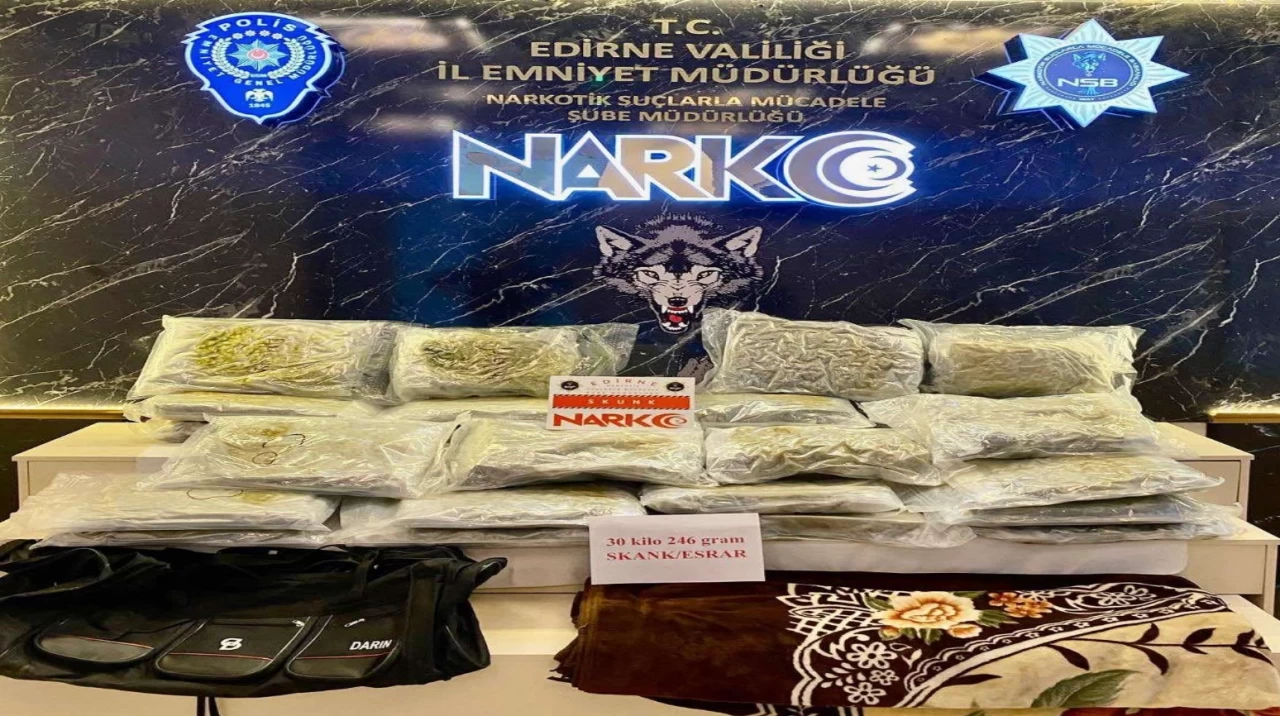 Edirne Emniyet Müdürlüğü Narkotik Suçlarla Mücadele Şube Müdürlüğü ekipleri, yurda uyuşturucu madde sokma şüphesiyle hareket ettikleri V.U'nun kullandığı tırı sınır kapısında durdurdu. Yapılan detaylı aramada, tırın içinde 30 kilo 246 gram skunk bulundu.