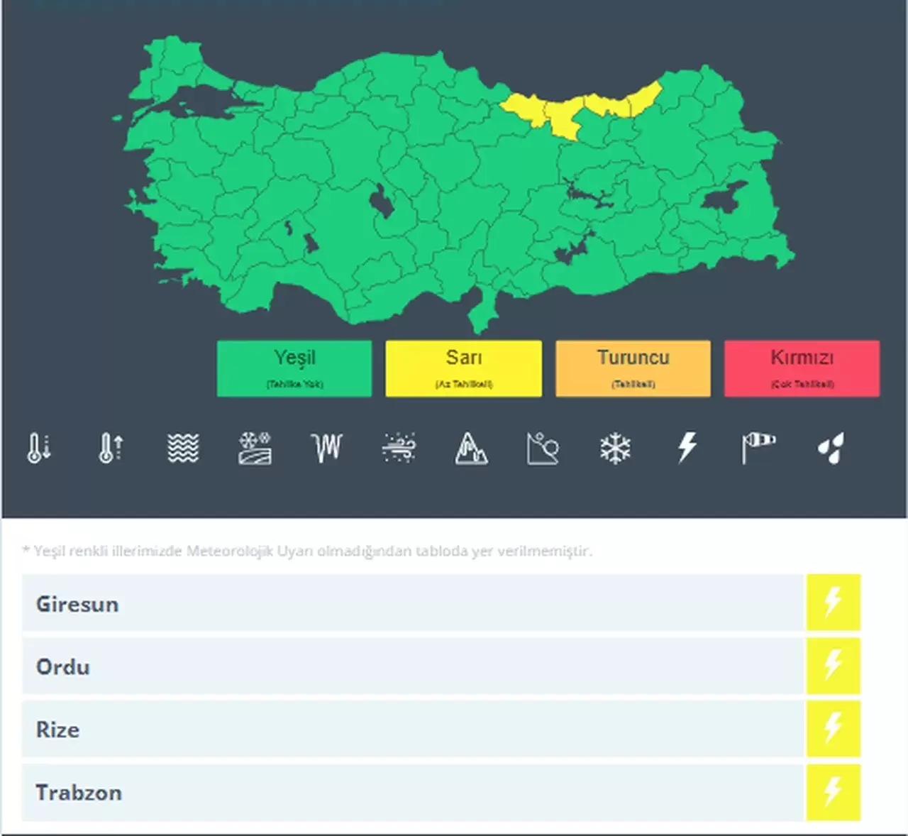 Yağışların; Samsun’un doğusu, Ordu, Giresun, Trabzon ve Rize çevrelerinde yerel kuvvetli olması beklendiğinden yaşanabilecek olumsuzluklara karşı dikkatli ve tedbirli olunması gerekmektedir.