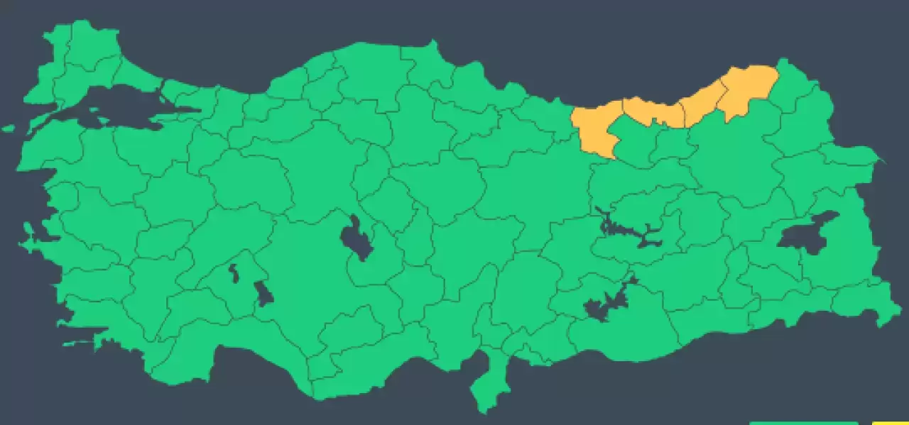 AFET ve Acil Durum Yönetimi Başkanlığı (AFAD) gök gürültülü sağanak nedeniyle bugün öğle saatlerine kadar; Rize, Giresun, Trabzon ve Artvin’de turuncu uyarı verildiğini açıkladı. Bölgede iki gündür devam etmekte olan aşırı yağışlar sonucu sel ve taşkın meydana geldiği bildirilen açıklamada, gelen ihbarlara Türkiye Afet Müdahale Planı (TAMP) kapsamında müdahale çalışmaları devam etmekte olduğu belirtildi.