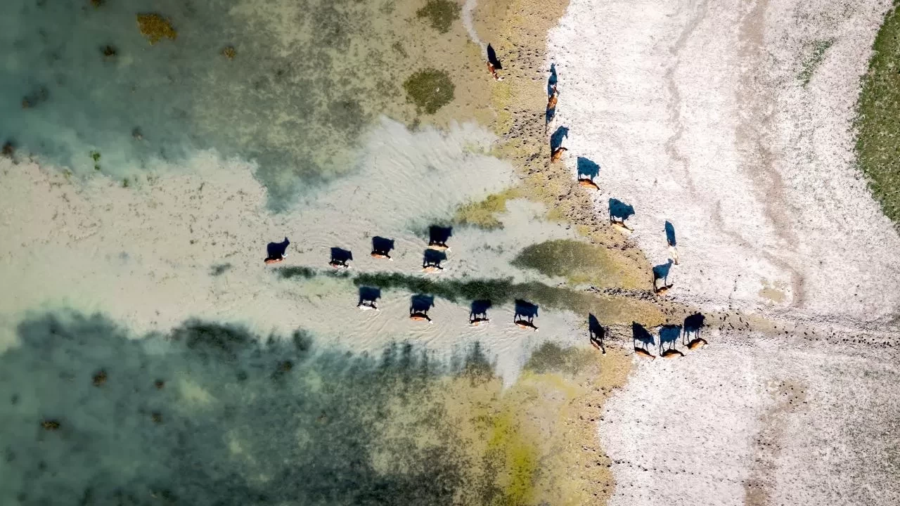 Bazı yetiştiricilerin büyükbaş hayvanlarını suyun çekilen kısımlarından karşıya geçirdikleri gözlendi.