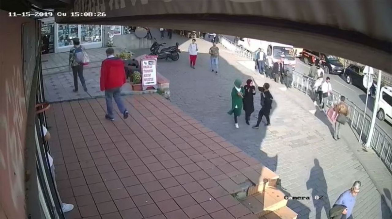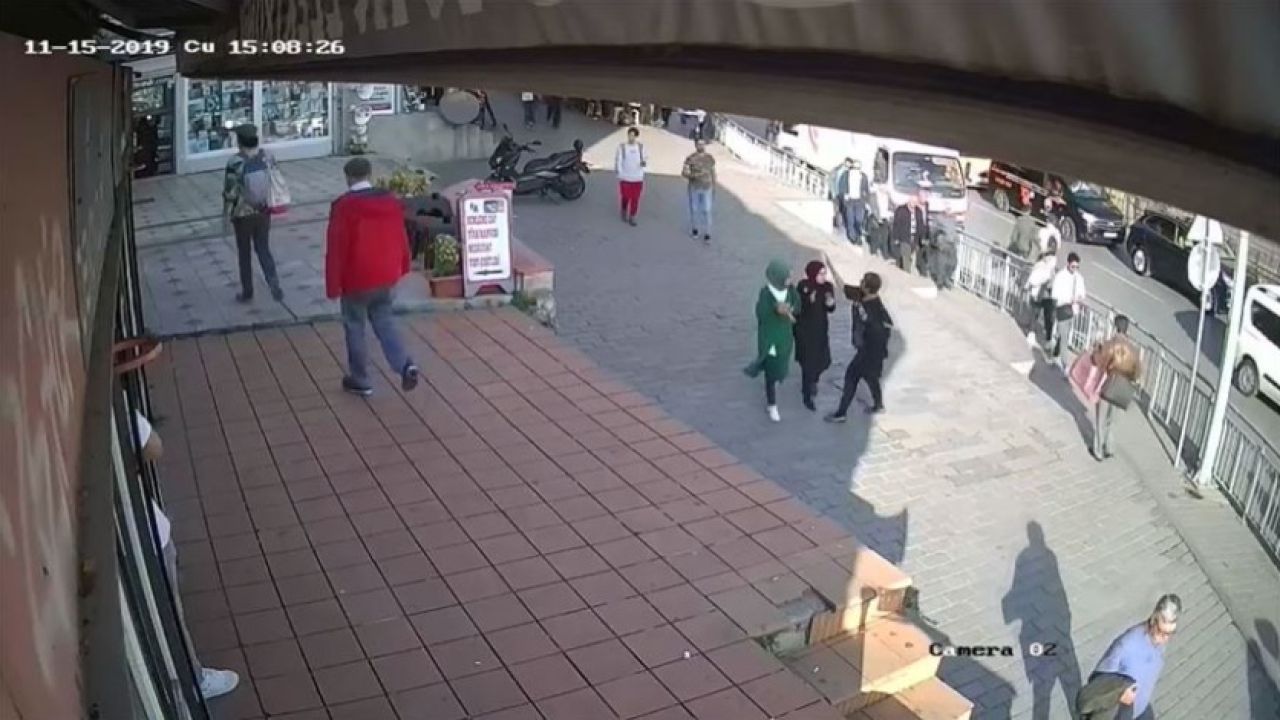 Saat 15.08'de yaşanan olay bir iş yerinin güvenlik kameralarınca kaydedildi. Görüntülerde, saldırıyı gerçekleştiren kadının uzaklaşırken başörtülü kızlara bakarak bağırdığı, bu sırada, kızın açılan saçını kapatmaya çalıştığı görülüyor.