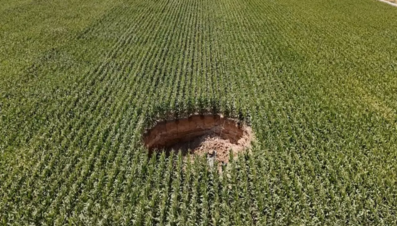 Karaman’ın merkeze bağlı Sudurağı beldesinde, mısır tarlasında 15 metre çapında ve 5 metre derinliğinde obruk meydana geldi.