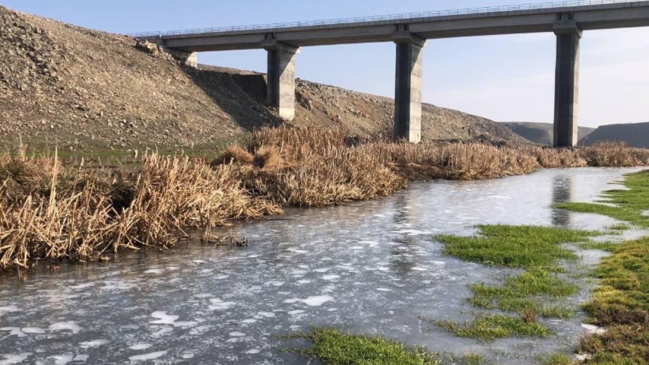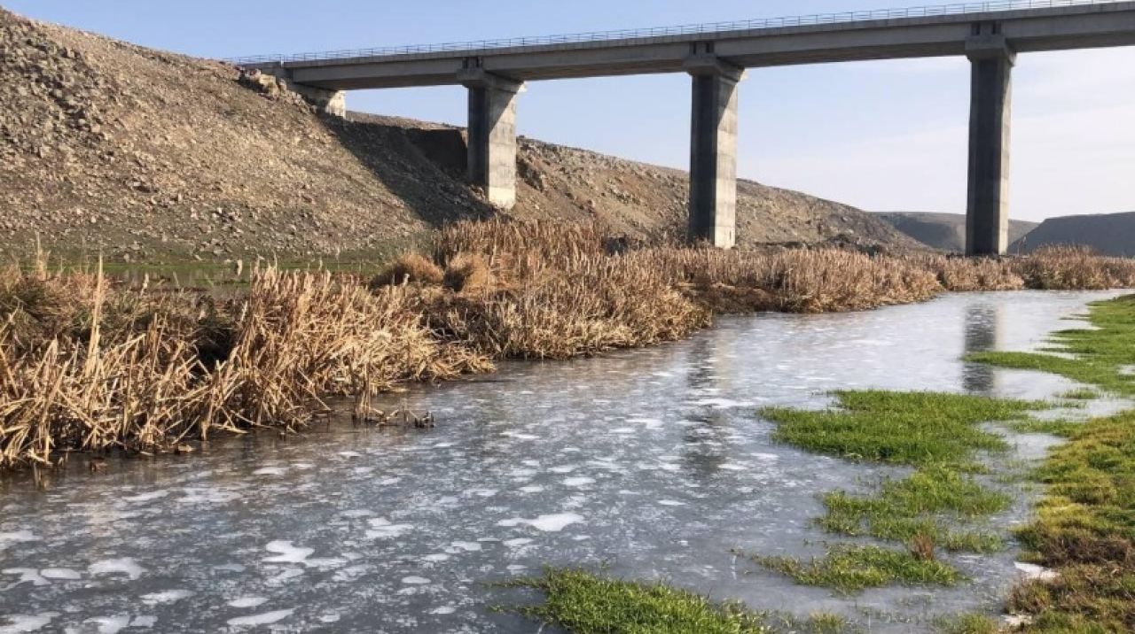 Hava sıcaklığının geceleri eksi 12’ye düştüğü Kars’ta araçların camları buz tutarken, soğuktan dereler de dondu.