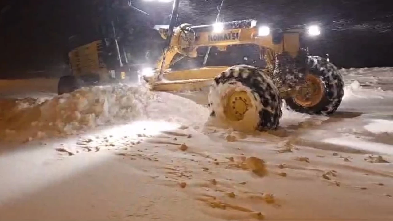 Kars İl Özel İdaresi karla mücadele ekipleri, kar yağışı devam etmesine rağmen kapanan yolların açılması için çalışmalarını sürdürüyor.
