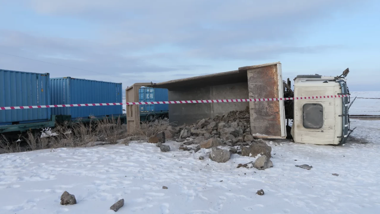Kars’tan Erzurum yönüne seyir halinde olan yük treni, Kümbetli köyü mevkisindeki hemzemin geçitte, Ali Sinan Çelik yönetimindeki taş yüklü hafriyat kamyonuna çarptı. Çarpmanın etkisiyle kamyon devrilirken, sürücü araçtan dışarı savruldu.