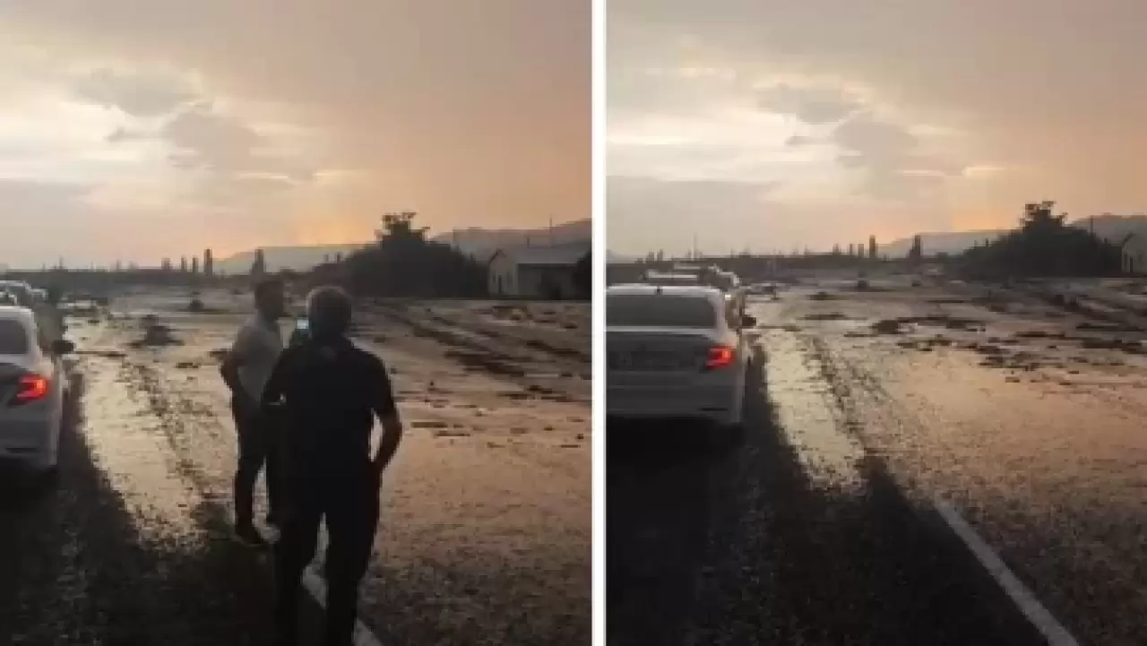 Yoğun sel sularının yıktığı bir ev ise vatandaşlarca cep telefonu kamerasıyla görüntülendi.